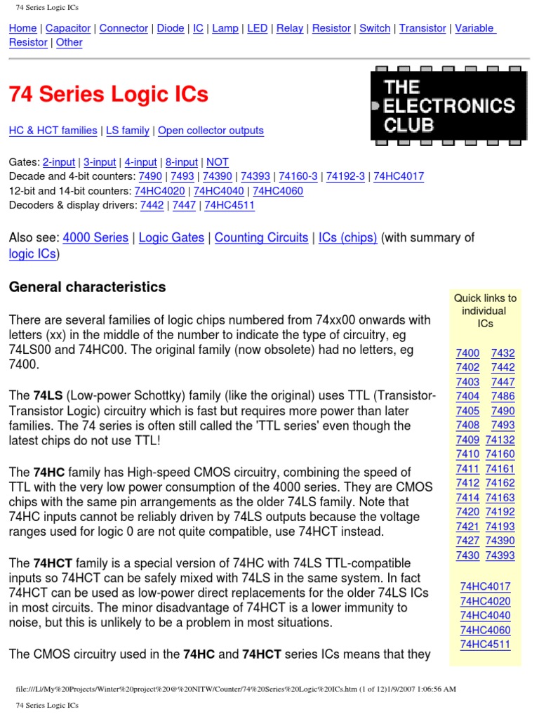 74 series logic ics electronics club