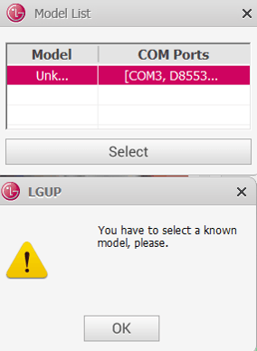 lg up unknow model hatasi cozumu